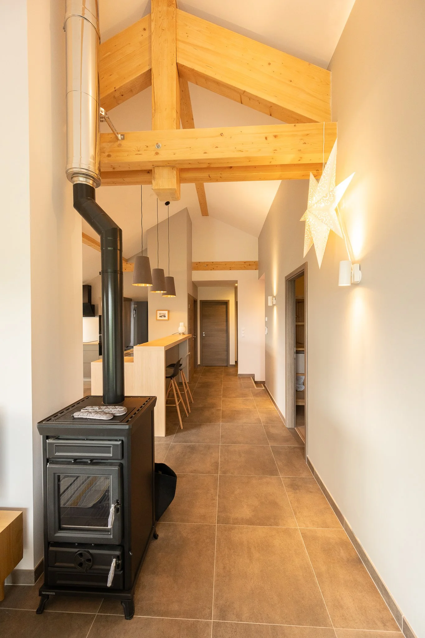 Situé au dernier étage, cet appartement pour 8 personnes de 140 m² vous séduira par sa hauteur sous plafond et ses poutres apparentes. Sa terrasse en tropézienne vous offre une vue panoramique sur le lac des Rousses et la vallée.